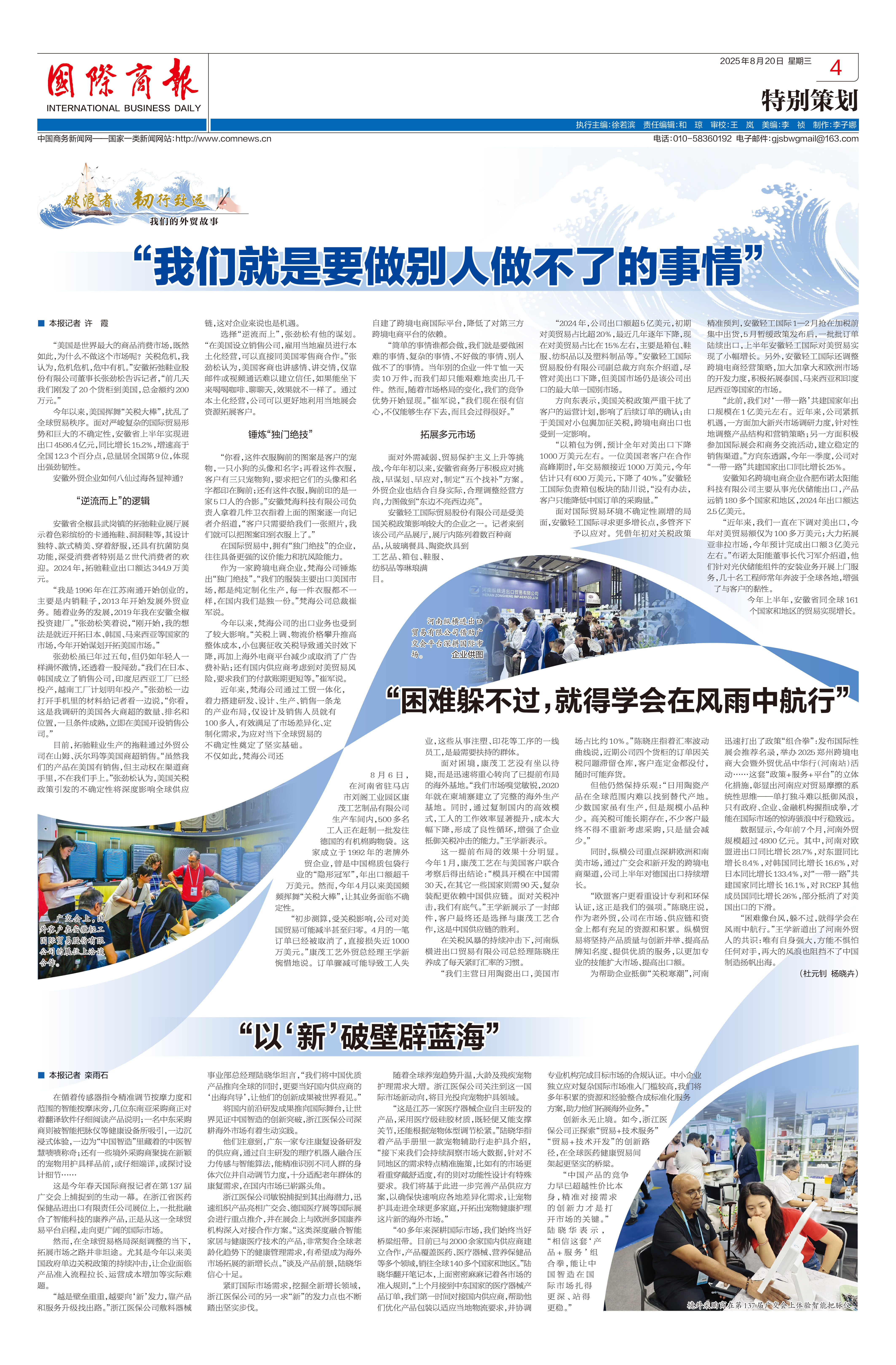 近日,商務(wù)部主辦的權(quán)威媒體《國(guó)際商報(bào)》在重要版面刊發(fā)題為《“困難躲不過,就得學(xué)會(huì)在風(fēng)雨中航行”》的深度報(bào)道,重點(diǎn)關(guān)注了在全球經(jīng)濟(jì)形勢(shì)復(fù)雜多變背景下,中國(guó)外貿(mào)企業(yè)迎難而上、積極求變的突圍之道。我司——駐馬店市康茂工藝制品有限公司作為外貿(mào)韌性發(fā)展的優(yōu)秀案例,被該報(bào)道予以重點(diǎn)推介。